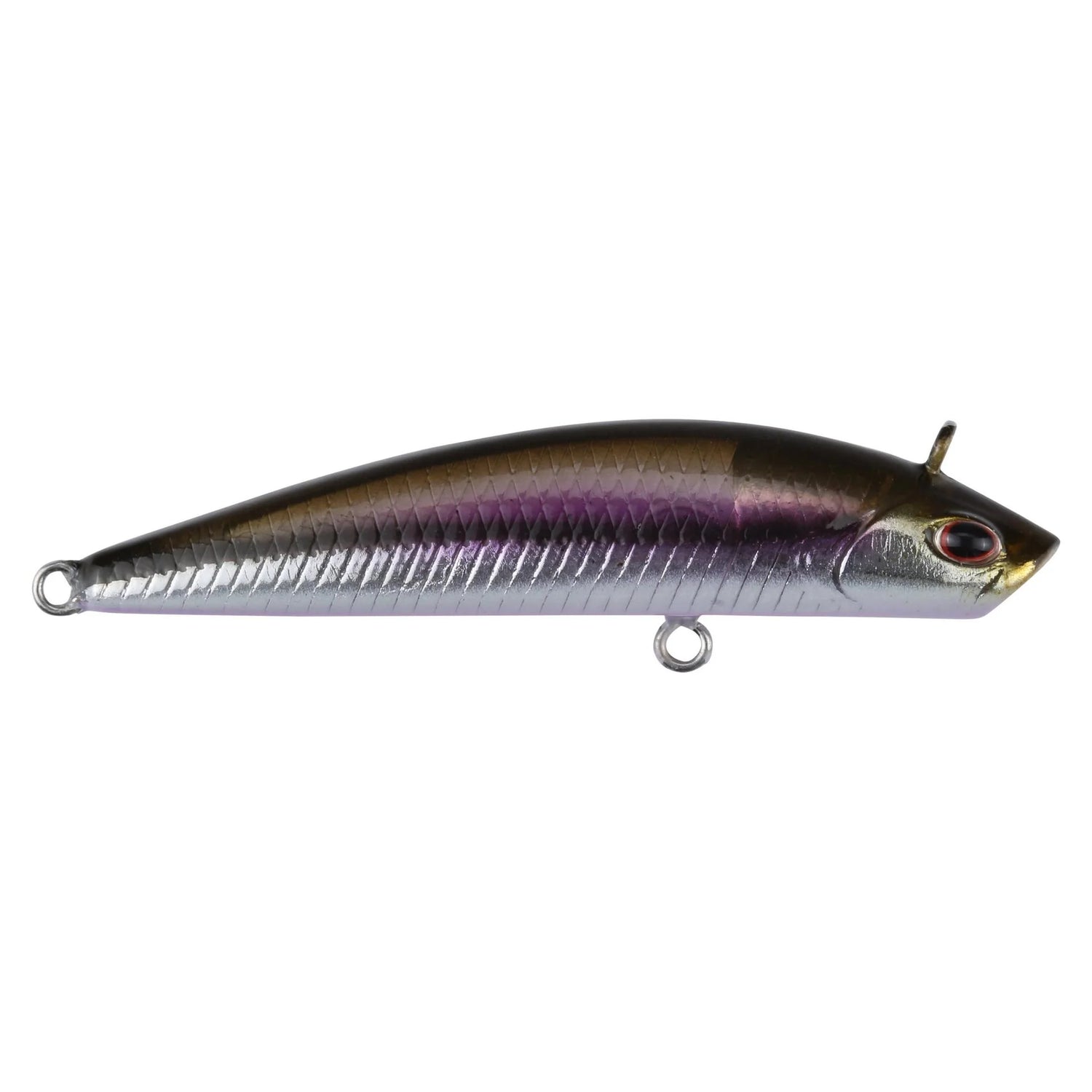 - Arc-shaped body, paired with flattened belly, allows anglers full control in the water column, allowing the bait to "hang" in position while being worked