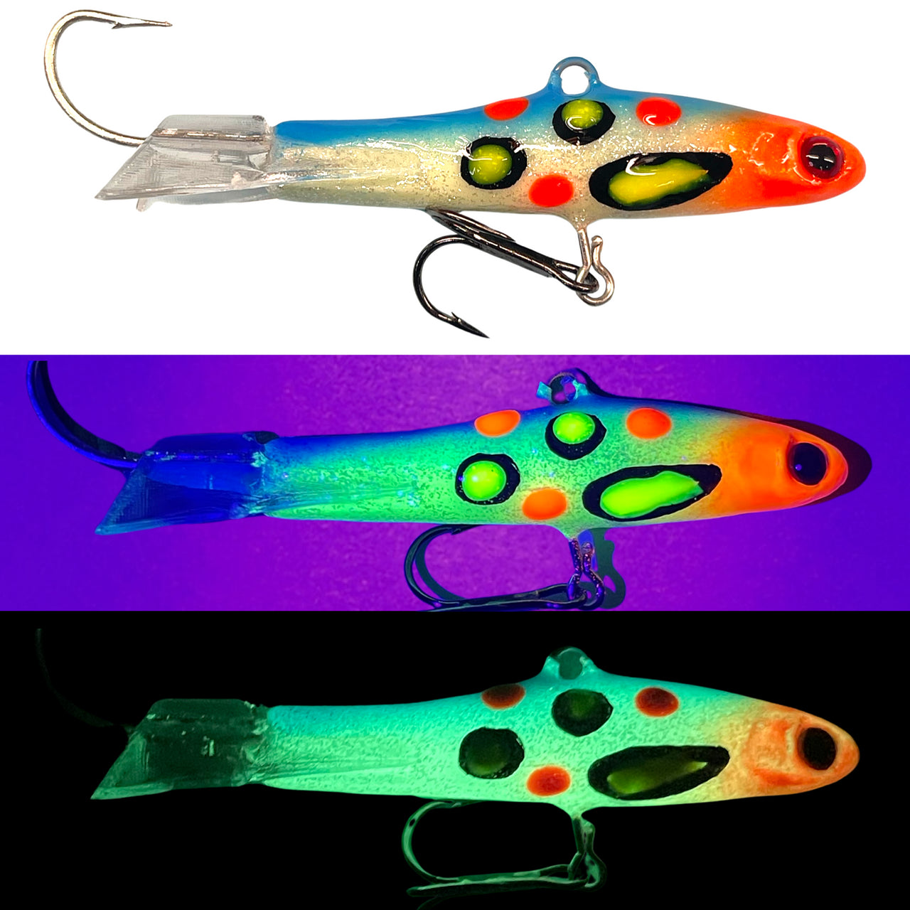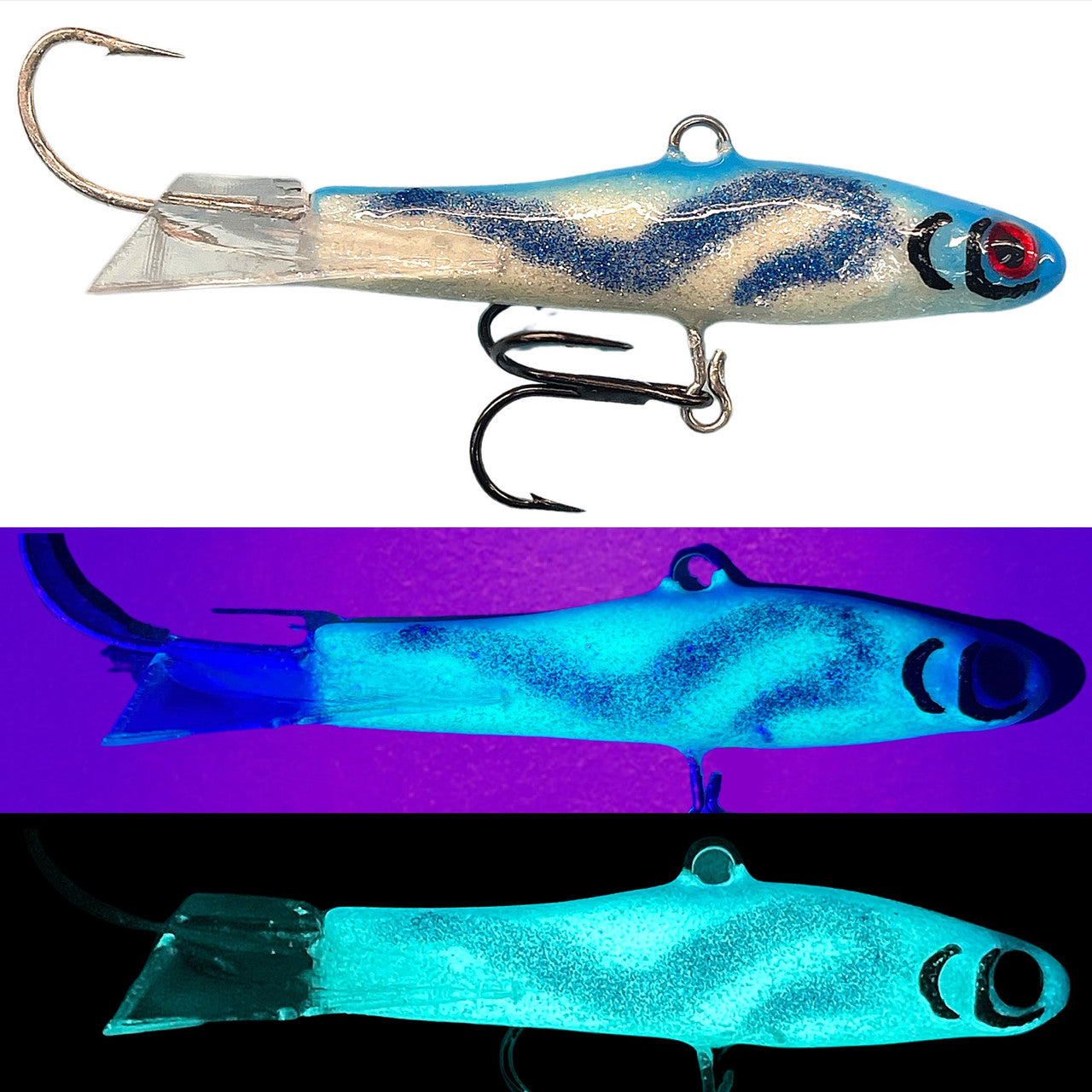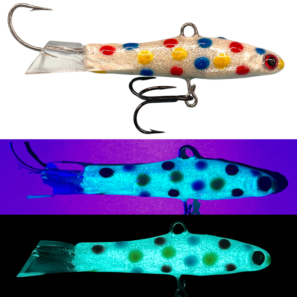 (NEW DESIGN) The Beaver Minnow is a Gliding Minnow used for jigging and casting. These are made with a durable paint finish, glitter flake, and extreme glow. Jig like a yo-yo to create a figure eight action.