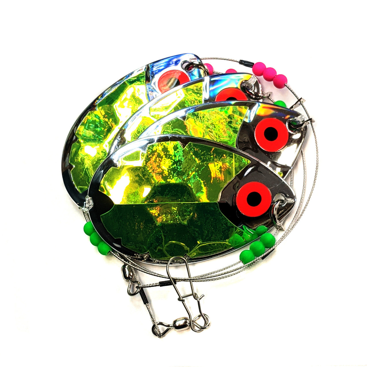 Salmon Candy's Cowbells are ideal for targeting Lake Trout! These specially designed cowbells are made with a unique material to offer both high flash and less drag then most of the competition!